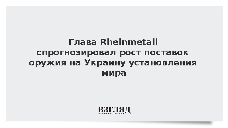 Глава германского оборонного концерна Rheinmetall Армин Паппергер в интервью газете Welt am Sonntag отметил, что даже в случае возможного мирного урегулирования конфликта на Украине, потребность в вооружении останется высокой, передает ТАСС.