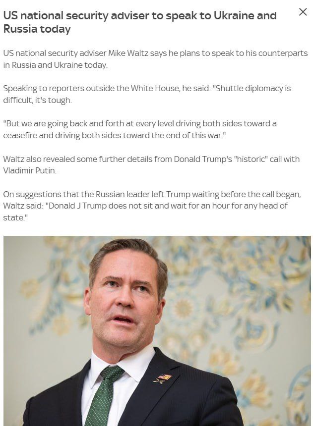 Уолтц сегодня проведет переговоры с представителями Украины и РФ по прекращению огня.