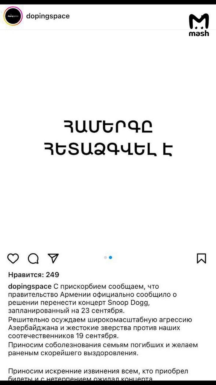 Организаторы концерта Snoop Dogg в Ереване одумались и перенесли выступление, запланированное на эту субботу. Спустя всего два дня массовых протестов в столице Армении и не менее массового хейта в интернете.