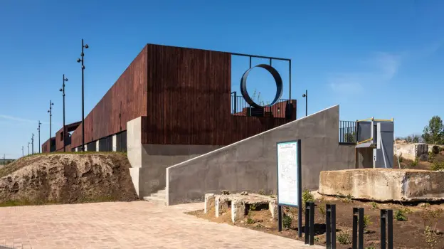 Реализуя проект, архитекторы нашли инновационное решение для использования бетонных фрагментов недостроенного предприятия. Вместо утилизации – дорогостоящей и вредной с точки зрения экологии – было решено обыграть эти конструкции в дизайне современного парка, соединив их с деревянными объектами.