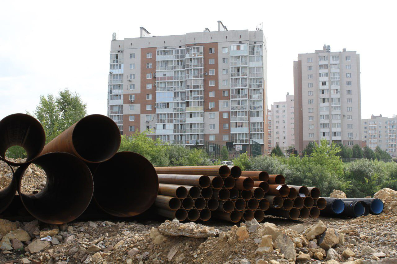 Также на участке много инженерных коммуникаций, переустройством которых и укладкой новых сейчас занимаются рабочие. Самой масштабной задачей стал перенос надземной теплотрассы, которая снабжает потребителей ФПК и части Ленинского района. Согласно планам, она будет проходить через канал внутри насыпи.