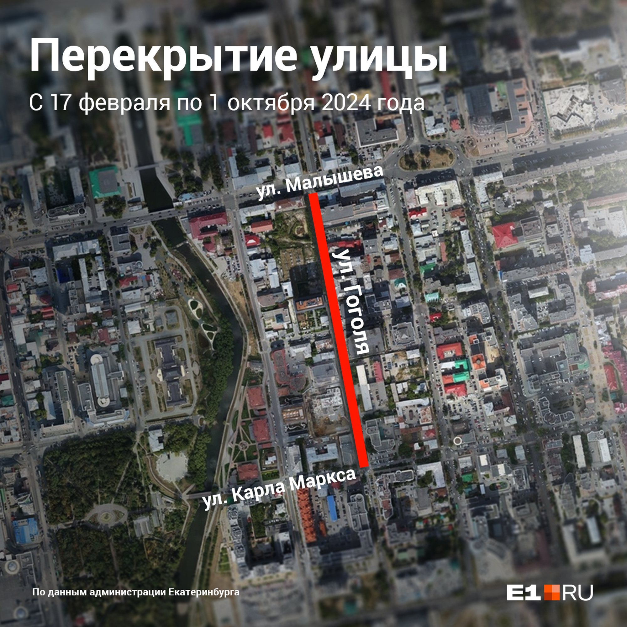 Элитный квартал в центре Екатеринбурга застрял в пробках. Большой участок улицы Гоголя закрыли на капитальный ремонт на целых восемь месяцев. Движение ограничили от Карла Маркса до Малышева, машины пустили в объезд по Белинского, Розы Люксембург и Горького. Кроме того, соседнюю улицу Энгельса закрыли из-за сноса здания «Карнеола».