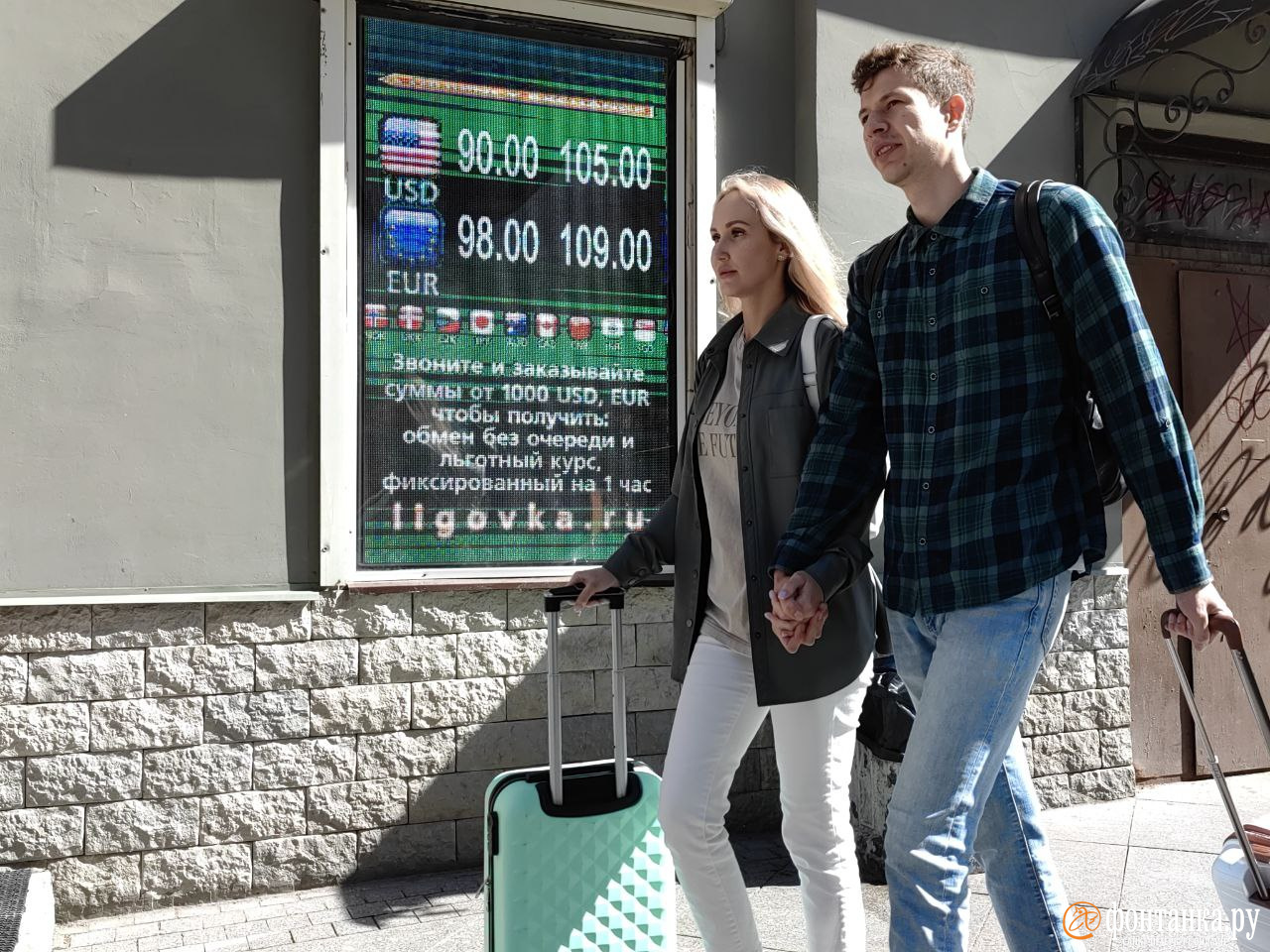 Обменные пункты в Петербурге подняли свои курсы продажи валют, ажиотажа не наблюдается. Фотограф «Фонтанки» утром 13 июня прошелся по центру городу и очередей не заметил.