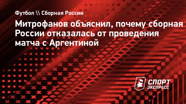 Митрофанов — о несостоявшемся матче с Аргентиной: «Считаем запрашиваемые средства неадекватными»