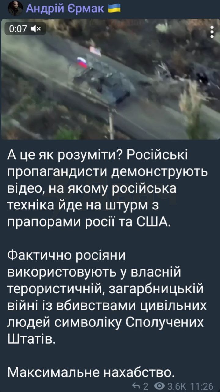 Мощнейшая тряска началась в украинских телеграм-каналах после появления в сети видео с американским БТР с флагами России и США