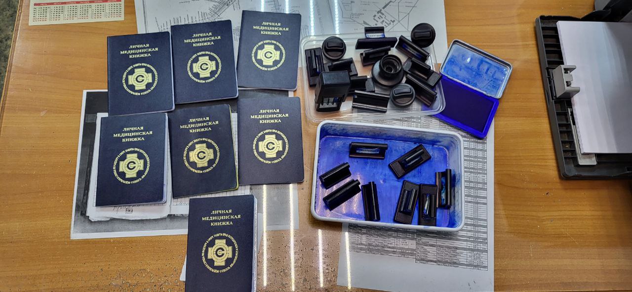 Как сообщили в транспортной полиции, у женщины были обнаружены незаполненные медицинские книжки, штемпельные подушки, датеры, штампы специалистов и медицинских учреждений, а также визитные карточки, которые распространялись в Республике Хакасия и на юге Красноярского края. По указанным телефонам можно было заказать поддельный документ о прохождении медицинского осмотра.