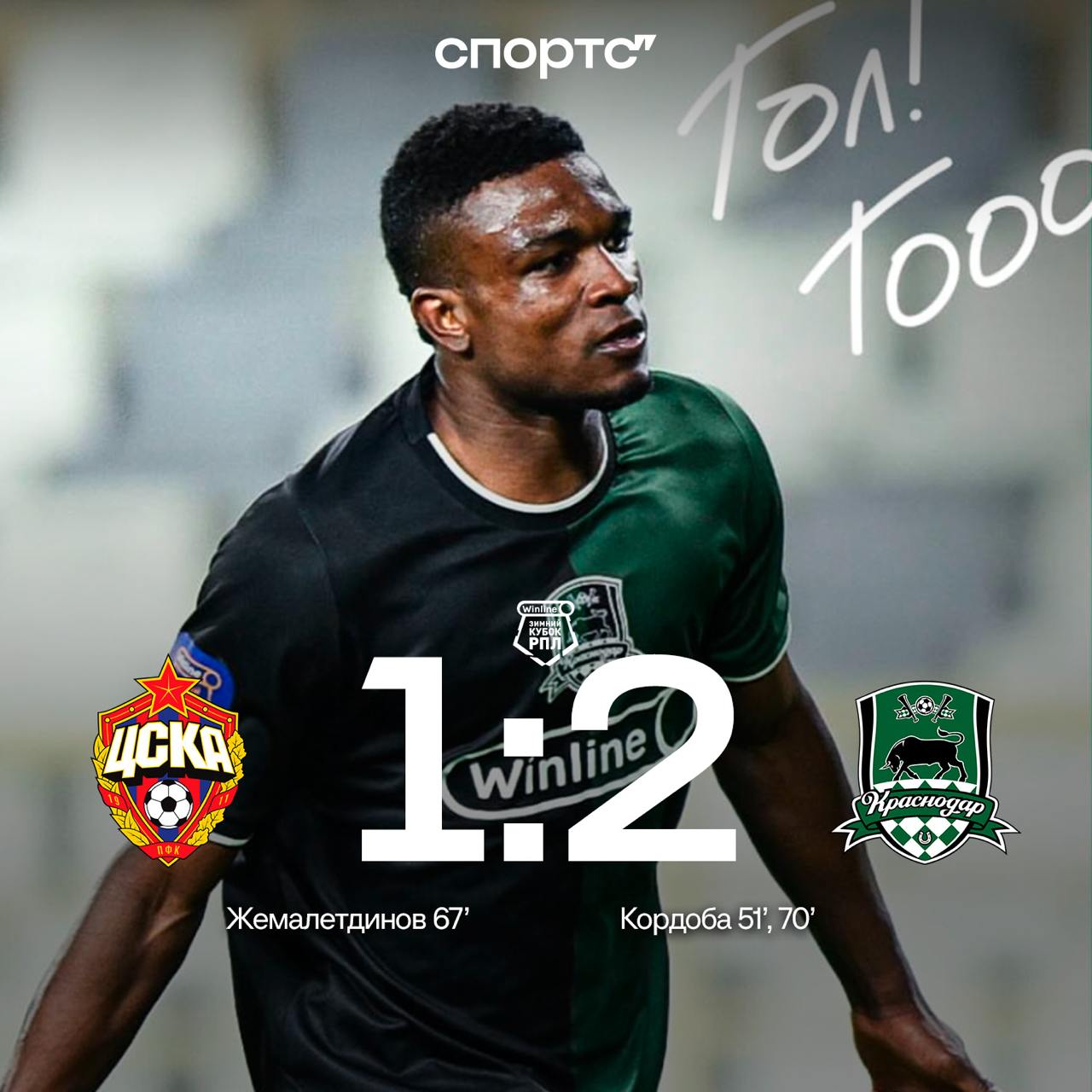 – дубль Кордобы принес победу в матче с ЦСКА. Завтра в финале «Спартак» сыграет с «Зенитом»