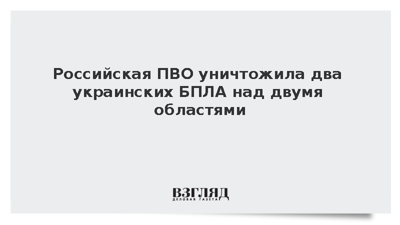 Информация о нейтрализации двух украинских беспилотных летательных аппаратов была опубликована в сообщении Минобороны, передает РИА «Новости».