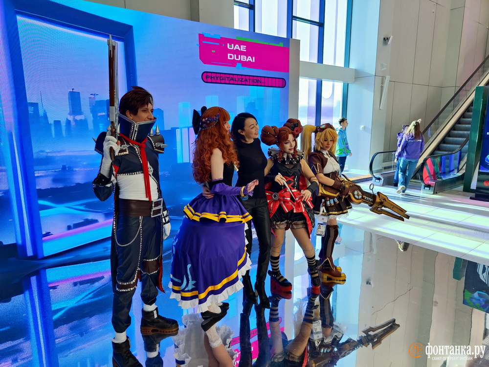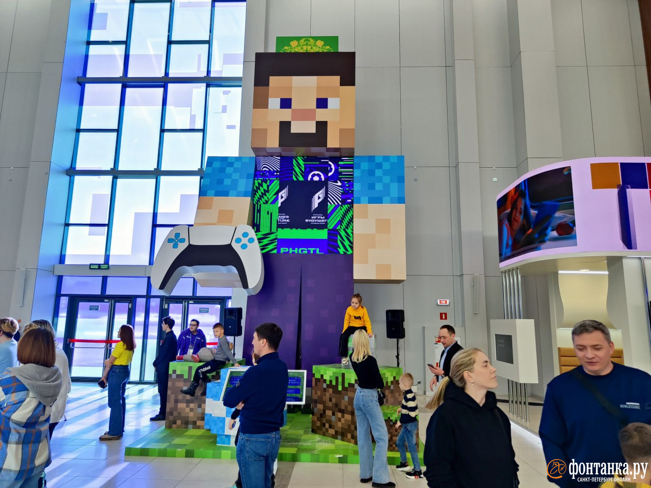 Вокруг ходят косплееры в костюмах удивительной детализации, стоят гигантские, размером с трехэтажный, дом фигуры персонажей Minecraft в тюбитейках, а если на них засмотришься, можно ненароком получить по голове от девушки в очках виртуальной реальности, которая рубит кого-то невидимого чем-то вроде светового меча из «Звездных войн», или споткнуться о пробегающего мимо робопса.