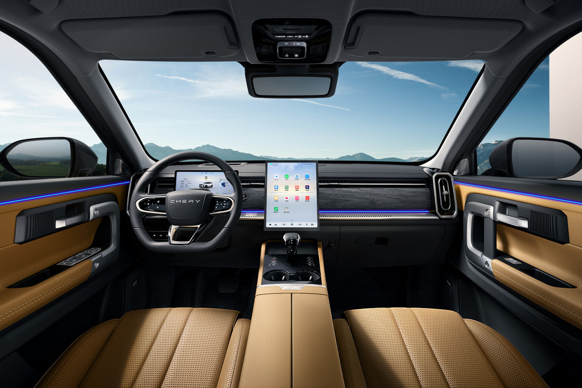 Внутри паркетник повторил Explore 06/Jaecoo J7, разве что перекомпонован центральный тоннель. Для модели заявлены виртуальная приборка, мультимедийная система с вертикальным планшетом, проекционный дисплей, беспроводная зарядка для смартфона, камеры кругового обзора, адаптивный «круиз», системы автоторможения и удержания в полосе.