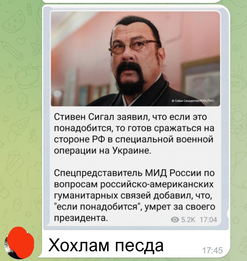 Актер, спецпредставитель российского МИД по гуманитарным связям с США Стивен Сигал рассказал, что в начале СВО написал письмо Путину, в котором выразил готовность умереть за него и за Россию.