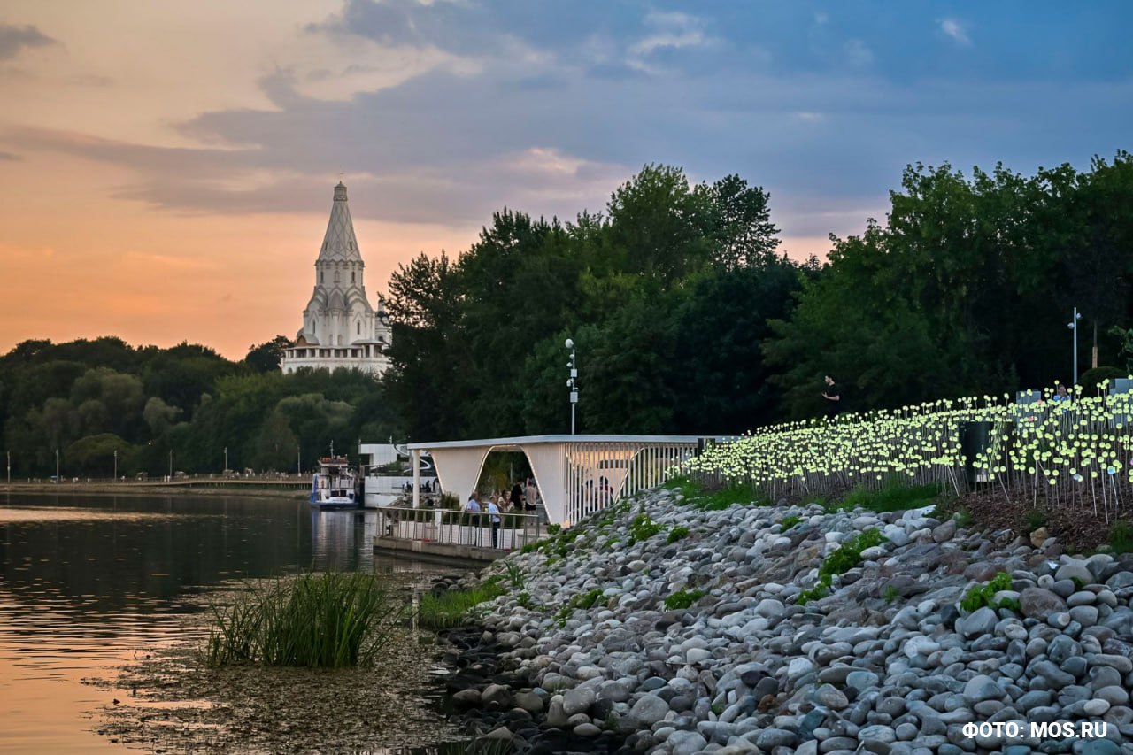Новую набережную открыли в столичном парке «Коломенское». Зимой на ней появится искусственный каток длиною до двух километров