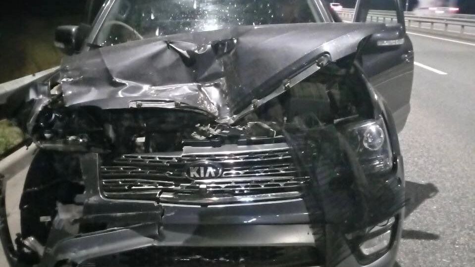 На кадрах с места аварии видно, что легковушка сильно помята спереди. Обстоятельства уточняются.