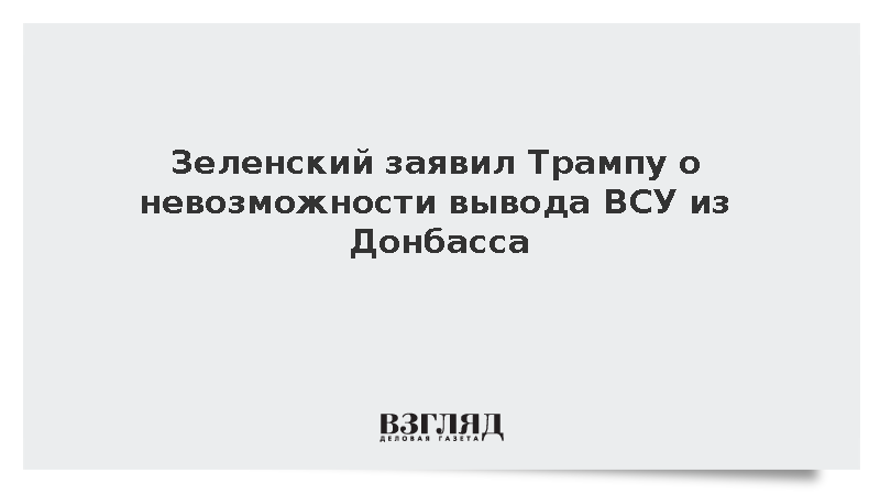 Глава киевского режима Владимир Зеленский сообщил президенту США Дональду Трампу, что вывод украинских войск из Донбасса невозможен, сообщило агентство Reuters.