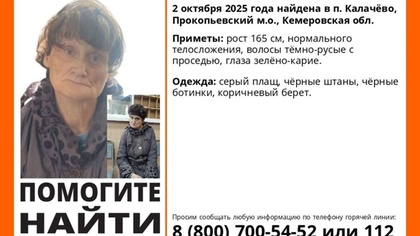 Волонтеры ПСО "ЛизаАлерт" сообщили, что в поселке Калачево, Прокопьевский округ, была найдена женщина 65-70 лет. Ее имя и фамилия неизвестны.