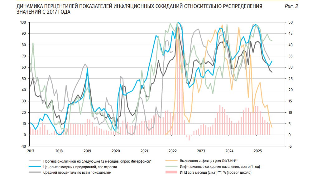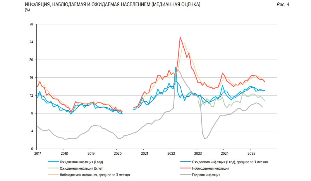 Рынок и бизнес нормализовал инфляционные ожидания заметно ниже показателей 2023-2024, тогда как по населению наоборот – немного выше.