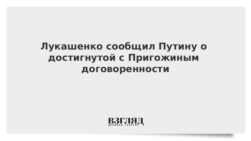 Лукашенко сообщил Путину о достигнутой договоренности с Пригожиным
