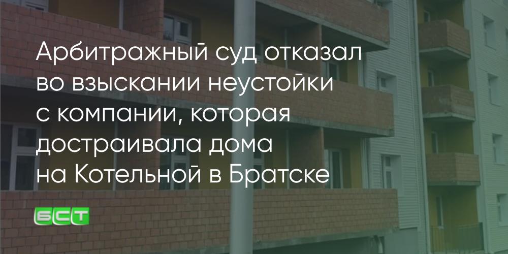 Строительной компании «Основание», которая достраивала дома для переселенцев из ветхого и аварийного жилья на улице Котельной в жилом районе Падун Братска, не придётся платить неустойку за срыв графика работ. Такое решение принял Арбитражный суд Иркутской области, сообщает Братская студия телевидения со ссылкой на запись в электронной картотеке арбитражных дел.