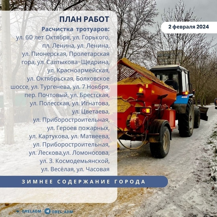 Улицы областного центра приводят в порядок с помощью 19 комбинированных дорожных машин, 7 самосвалов, 12 тракторов, 4 погрузчиков, 1 УКМ – всего 43 единицы техники. К снегоуборочным работам привлекли 70 человек.