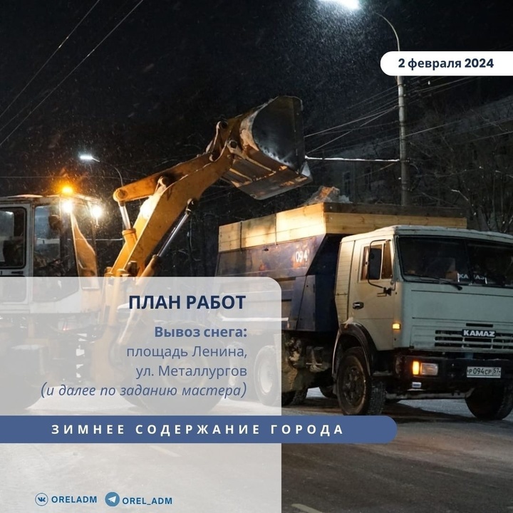 В Орле с дорог вывезли 1 876 кубометров снега