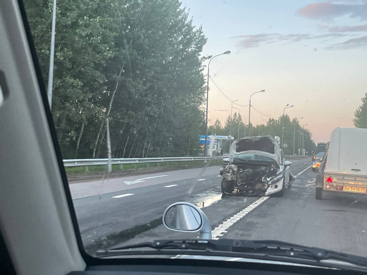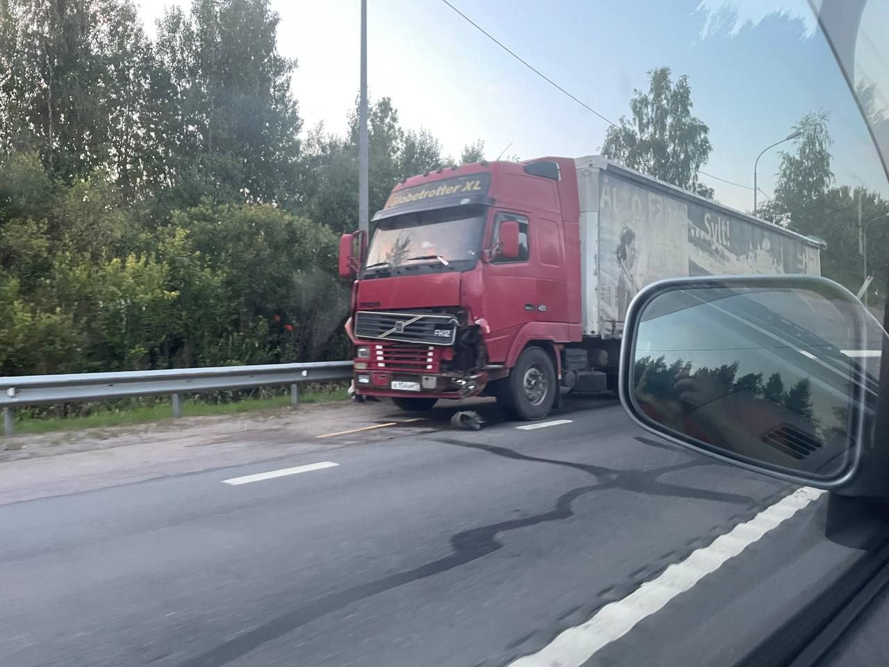 На Мурманском шоссе перед поселком Селиваново — серьёзное ДТП. Столкнулись фура и два легковых автомобиля. Одна из машин вылетела с дороги.