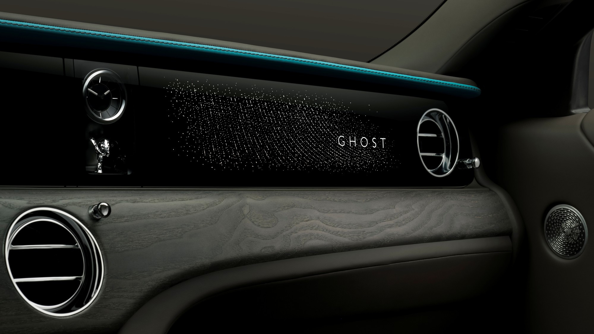 Под стрелочными часами на передней панели у обновлённого Ghost появилась маленькая фигурка «Духа экстаза». Цветовое оформление приборного и мультимедийного экранов теперь можно подобрать под цвет автомобиля. Мощностью штатной аудиосистемы с 18 динамиками увеличена с 1300 до 1400 Вт. Улучшена совместимость бортовой электроники с современным гаджетами, в том числе с беспроводными наушниками.