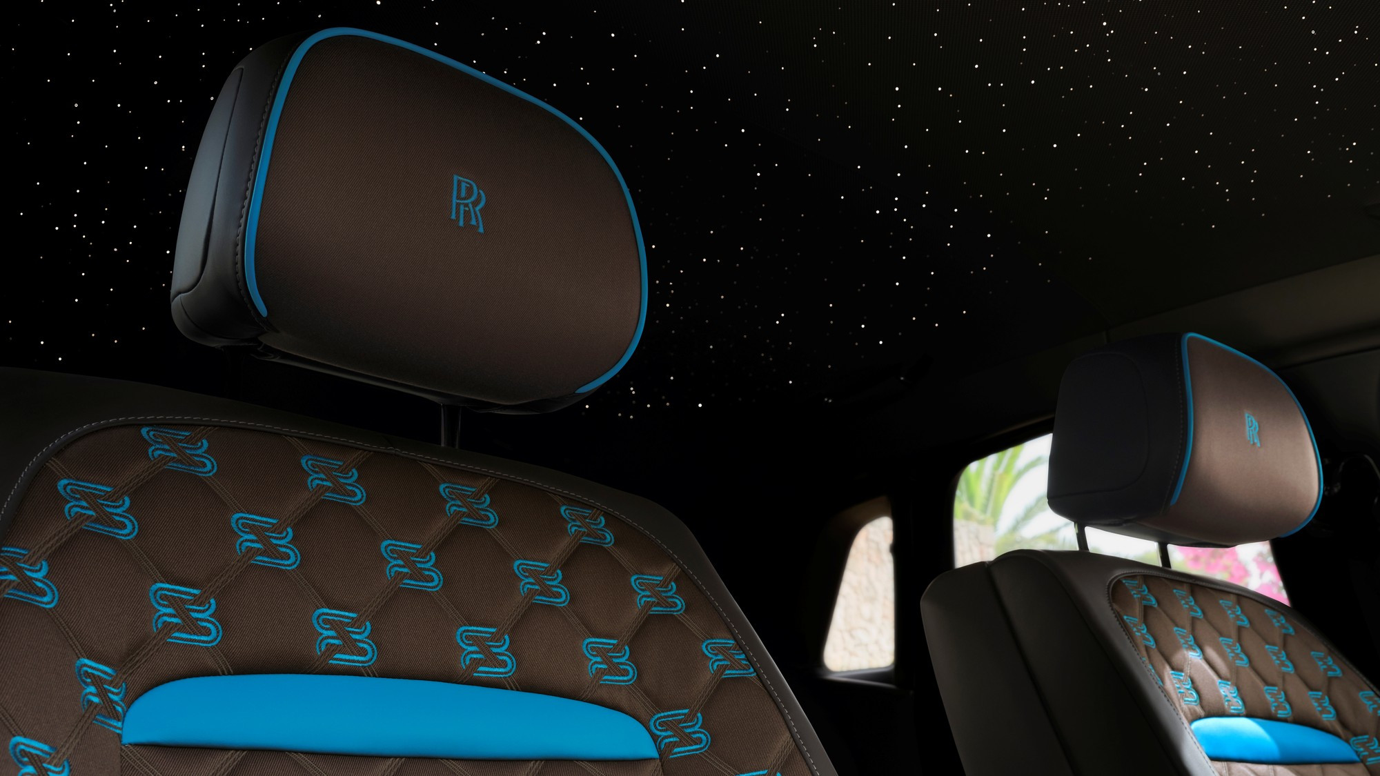 Доступная для кузова палитра из 44 000 цветов дополнена особо изысканными оттенками. Например, синяя машина на фотографиях окрашена в цвет Mustique Blue, названный так в честь острова Мюстик в Карибском море, — это синий металлик с добавлением частичек стекла и слюды, благодаря которым краска особенно эффектно смотрится на солнце.
