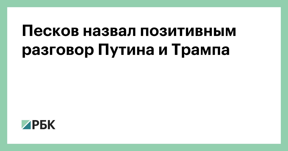 РБК3 месяца назадПесков назвал позитивным разговор Путина и Трампа Разговор российского президента Владимира Путина и американского президента Дональда Трампа был очень позитивным. Об этом заявил пресс-секретарь российского лидера Дмитрий Песков. Материал дополняется Читайте РБК в Telegram. Темы и тегиРоссияПолитикаДмитрий Песков Дональд Трамп Владимир Путин позитивный разговор президент российский Telegram РБК