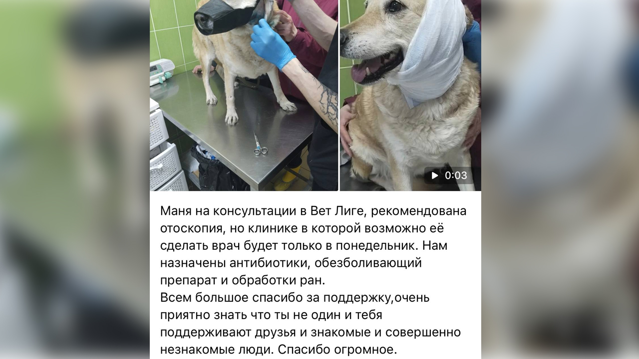Сейчас с раненой собакой всё в порядке, её взяла на передержку неравнодушная женщина. А в полиции тем временем начали проверку.