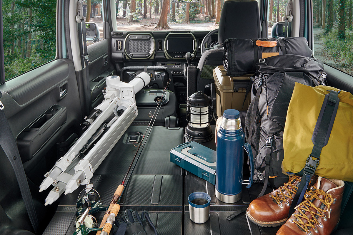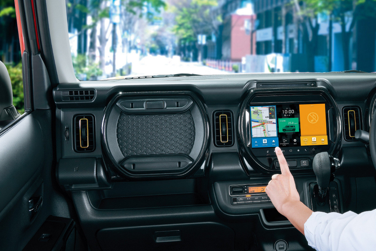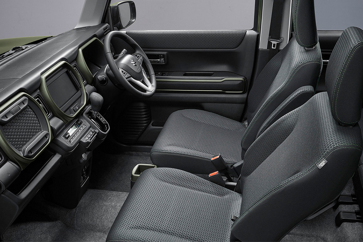 В салоне Suzuki Hustler Tough Wild – темно-зеленые декоративные вставки и водоотталкивающая тканевая обивка сидений. В списке стандартного оборудования еще значатся климат-контроль и подогрев передних кресел. Мультимедиа-система с 9-дюймовым экраном все так же предлагается исключительно в виде опции.