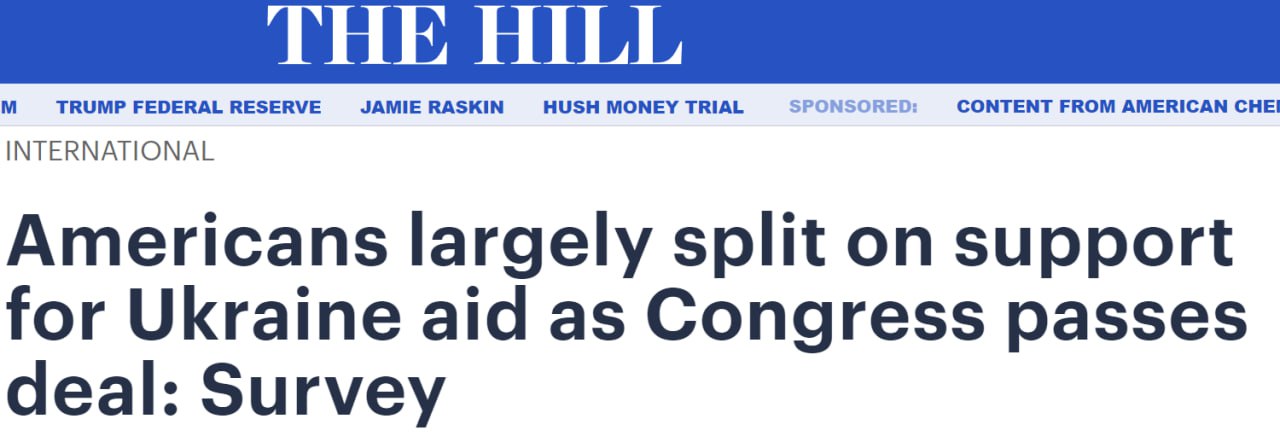 Американцы разделились во мнениях относительно того, следует ли Соединенным Штатам продолжать оказывать Украине помощь в войне с Россией, несмотря на то, что Конгресс недавно принял соответствующий законопроект, пишет Hill со ссылкой на новый опрос YouGov.