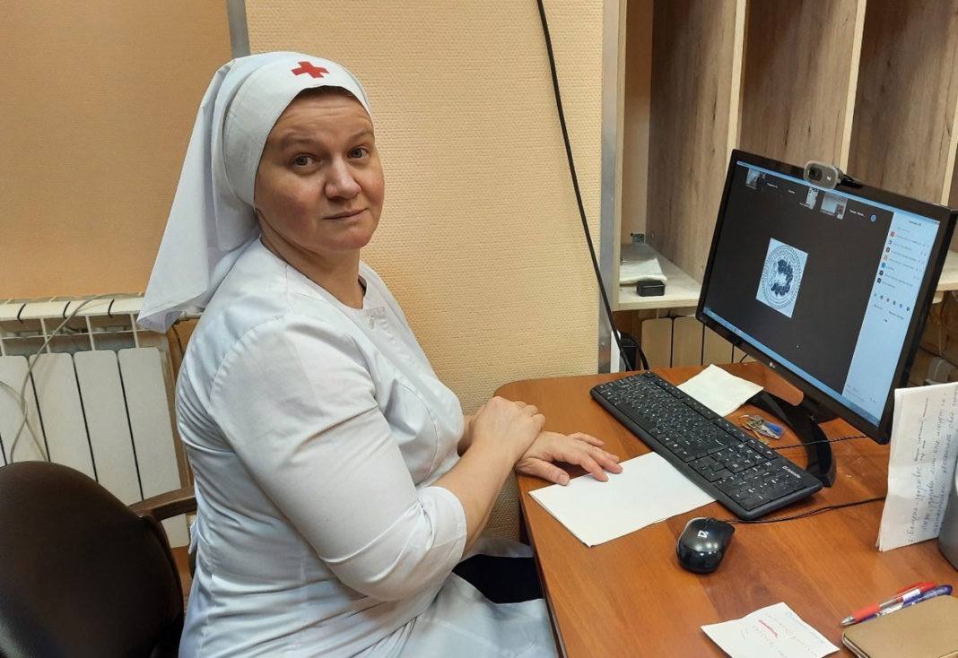 Татьяна Евгеньевна Кравченко – мама шестерых детей, сестра милосердия, преподаватель по уходу за тяжелобольными и раненными Учебного Центра Больницы Святителя Алексия, регулярно пребывает в командировках в госпиталях зоны проведения Специальной военной операции на Украине.