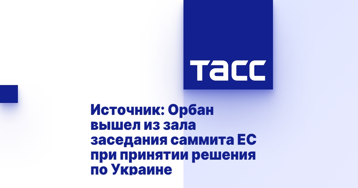 БРЮССЕЛЬ, 14 декабря. /ТАСС/. Премьер-министр Венгрии Виктор Орбан вышел из зала заседания, где проходил саммит ЕС, при принятии решения о начале переговоров с Украиной. Об этом сообщил журналистам европейский источник в кулуарах саммита.