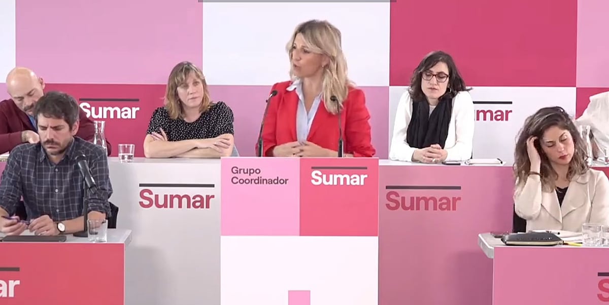 En un contexto marcado por la situación inédita que vive estos días la política española, a la espera de conocer el lunes la decisión sobre la continuidad del presidente Pedro Sánchez al frente del Gobierno, la vicepresidenta segunda, Yolanda Díaz, ha llamado este sábado a la ciudadanía a “defender la democracia”. “Nadie va a doblegar a este Gobierno”, ha trasladado muy firme. Con una lectura política distinta a la del PSOE, la líder de Sumar ha reivindicado la continuidad de la coalición, pero pide “salir a la ofensiva programática” para gobernar “más y mejor”. “No es lo mismo aguantar los ataques de la extrema derecha cuando estás transformando tu país que cuando estás encerrado y a la defensiva”, ha criticado después de meses denunciando las reticencias de los socialistas a avanzar en la agenda legislativa. El grupo de coordinación de Sumar, reunido en el Círculo de Bellas Artes de Madrid, ha votado este sábado la Ejecutiva del partido, una forma de reforzar la estructura orgánica de la plataforma. Lara Hernández, exdirigente de Izquierda Unida, será la responsable de Organización, Ernest Urtasun continúa como portavoz, Elizabeth Duval llevará Comunicación e Íñigo Errejón se convierte en secretario de Análisis político y Discurso.