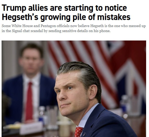 «Союзники Трампа начинают замечать растущую кучу ошибок Хегсета» – статья с таким заголовком вышла в Politico.