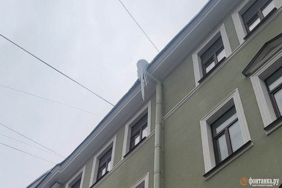 Другие жители сигнализируют об опасностях, которые продолжают нависать над ними. Вот такую внушительную острую сосульку увидели прохожие на крыше дома на Большой Морской улице, и судьбу испытывать не хочется никому.