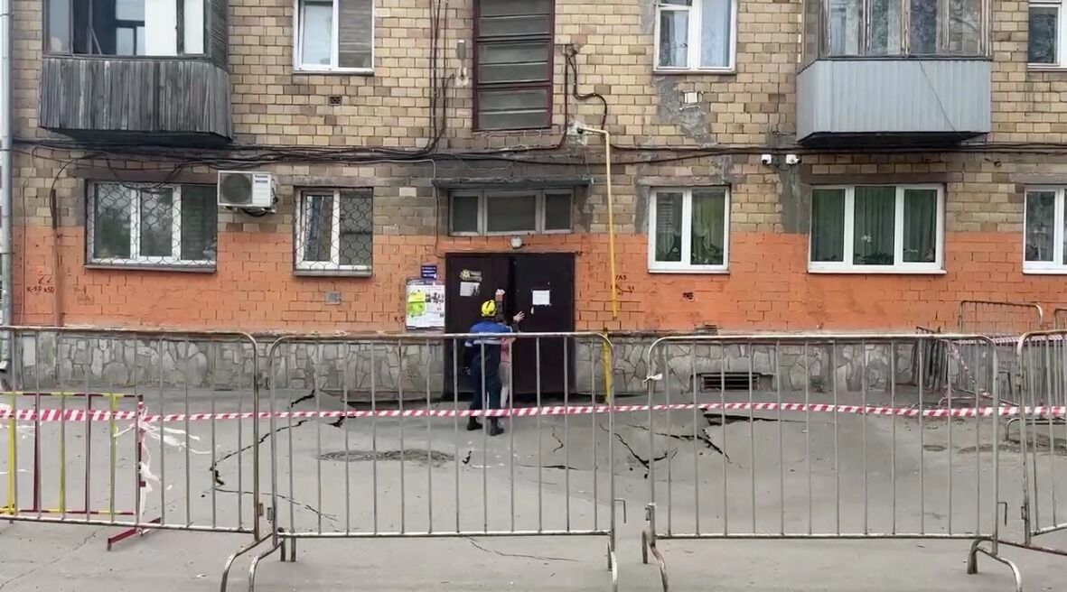 Камера показала, как проваливался асфальт у пятиэтажки на Бограда. Жуть
