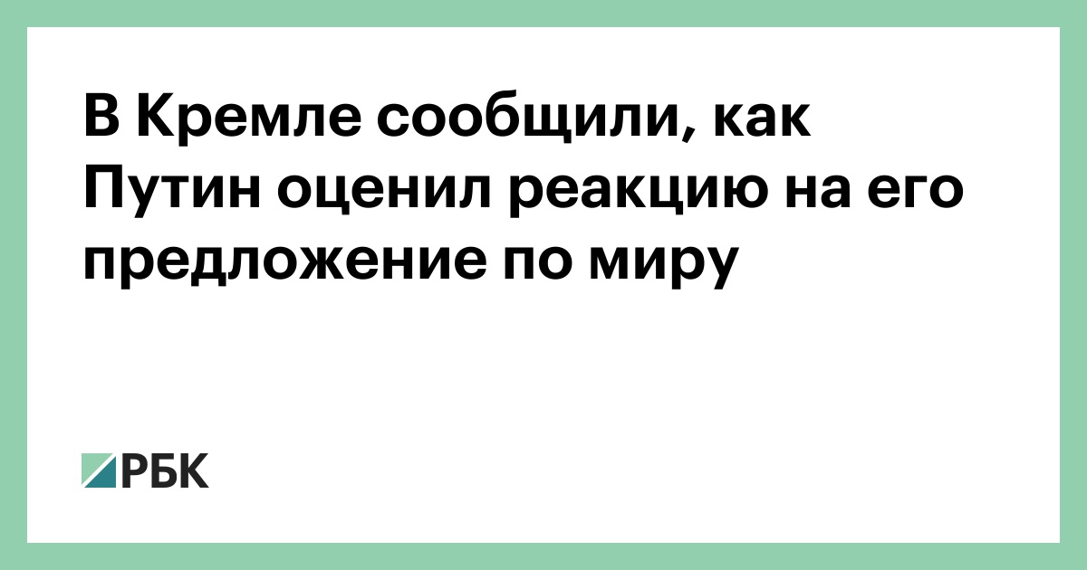 «Он (Путин. — РБК) сказал, что это достаточно предсказуемо, но все равно даже в киевском режиме найдутся люди, которые задумаются, стоит ли ждать, когда условия для того же киевского режима еще более ухудшаются», — сообщил Песков, отметив, что предложение российского президента — именно мирная инициатива, а не ультиматум или предупреждение.