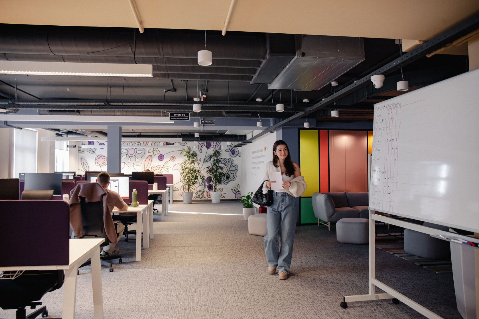 Местный фольклор нашёл отражение в декоре — в офисе можно встретить много казанских котиков, а на стенах красуются ковры ручной работы. Для Аделины и Ильнура это было в новинку, поэтому в перерывах от работы они стремились рассмотреть каждый уголок пространства или заняться чем-нибудь необычным, например поиграть в приставку или сделать спортивную разминку.