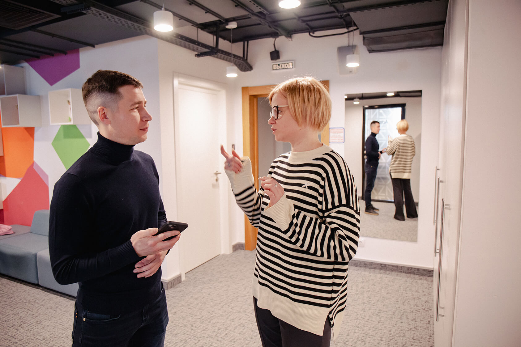 Ильнур сразу отметил дружелюбную атмосферу. Кто-то обсуждает тонкости работы, другие пьют кофе за неформальной беседой, все открытые и вежливые — впечатление сложилось максимально позитивное. Аделина согласна: «Я бы точно хотела работать с командой Авито».
