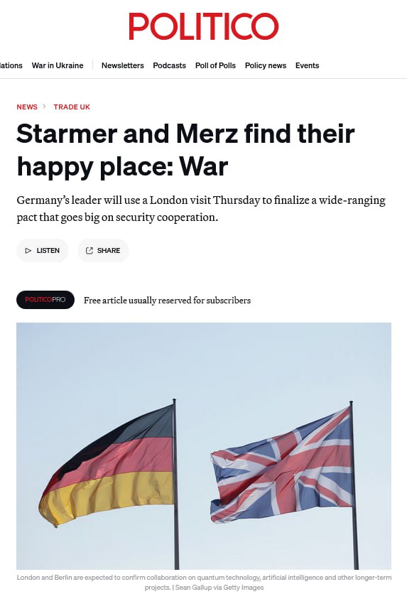 "Стармер и Мерц нашли себе новое место для счастья — войну"