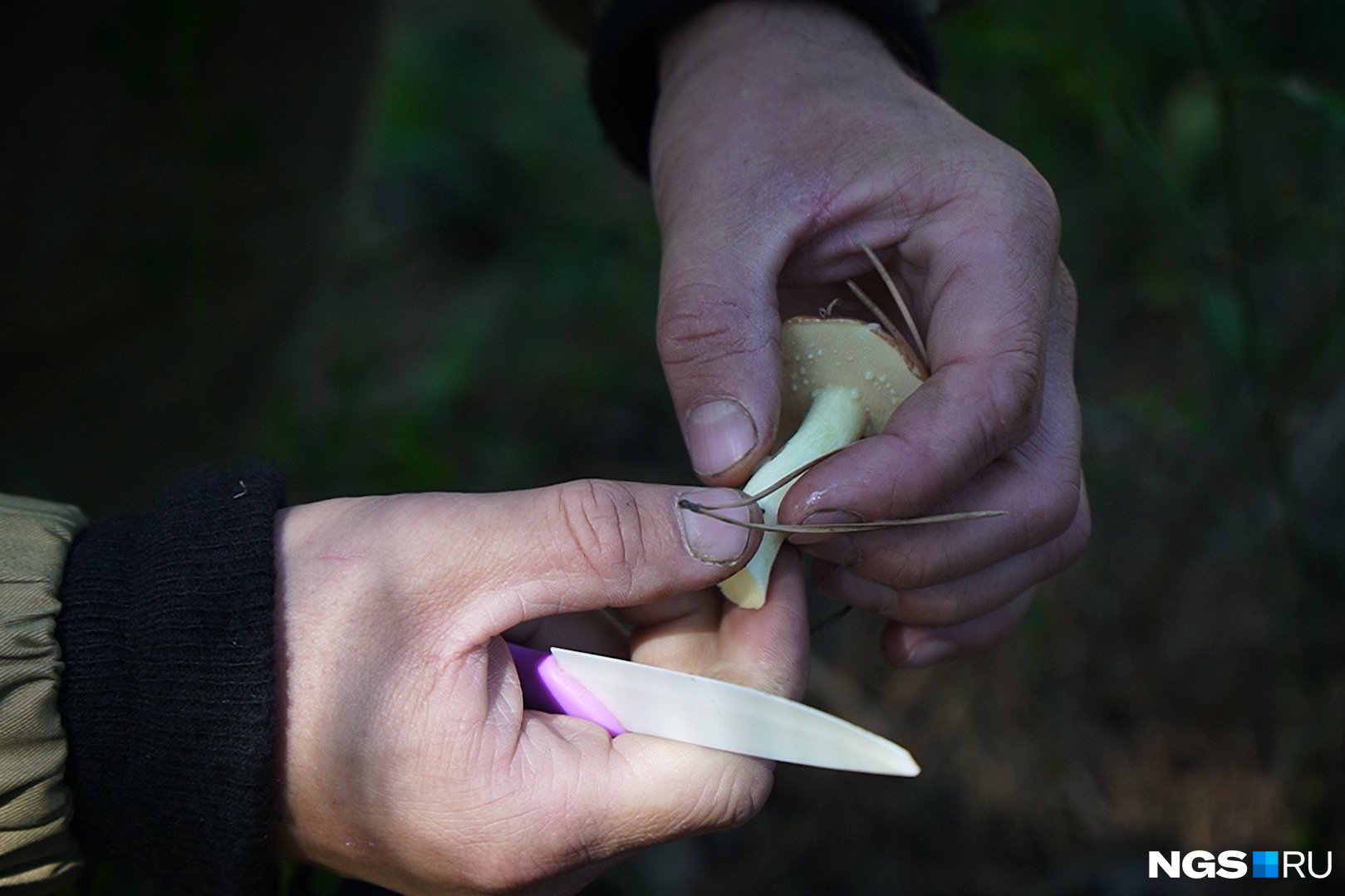 — Самый оптимальный способ взятия гриба — это раскачивание. Берете гриб за ножку, за верхнюю часть и расшатывающими движениями аккуратно его изымаете из почвы. После этого грязную часть ножки обрезаете ножом, — советует специалист.