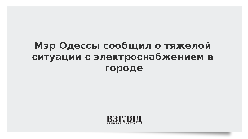 Мэр Одессы Геннадий Труханов заявил об «очень тяжелой ситуации» с электроснабжением в городе, сообщает РИА «Новости». Он отметил, что городской совет работает в экстренном режиме, чтобы справиться с проблемой.