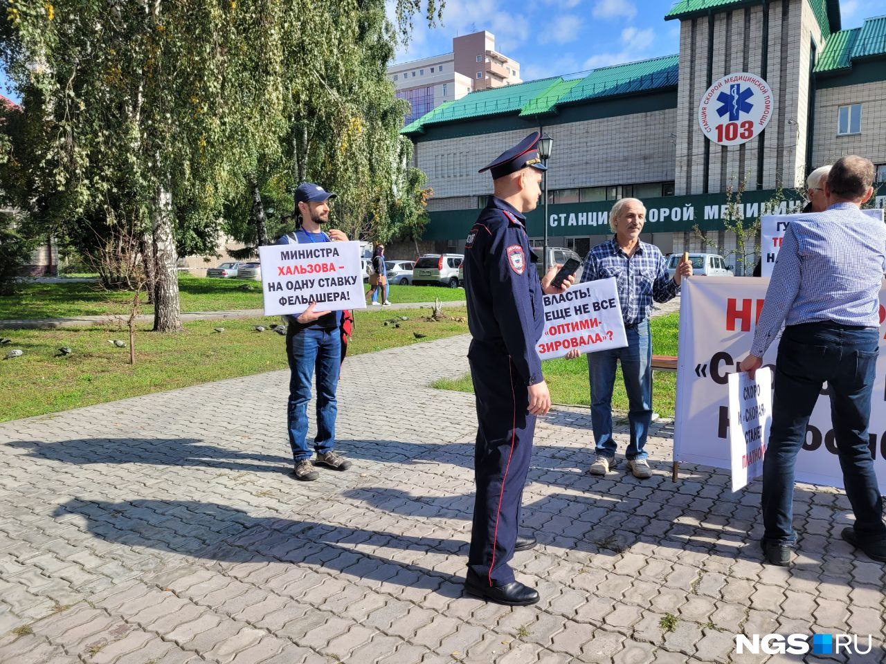В полдень 16 сентября в Новосибирске рядом со станцией скорой медицинской помощи прошёл пикет в защиту интересов фельдшеров и водителей, работающих на станциях скорой медицинской помощи. Акция была согласована с властями.