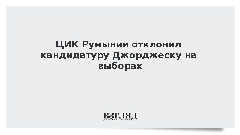 Центральное избирательное бюро Румынии отклонило кандидатуру Кэлина Джорджеску на президентских выборах, передает РИА «Новости». Это решение было принято при голосовании, в ходе которого десять членов бюро проголосовали против Джеорджеску, а четыре – за.