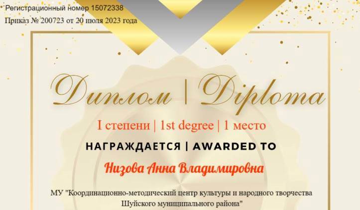 Методист Координационно-методического центра культуры и народного творчества Шуйского района Анна Низова стала победителем международного конкурса проектов "Фронтраннеры прикладных и фундаментальных исследований".
