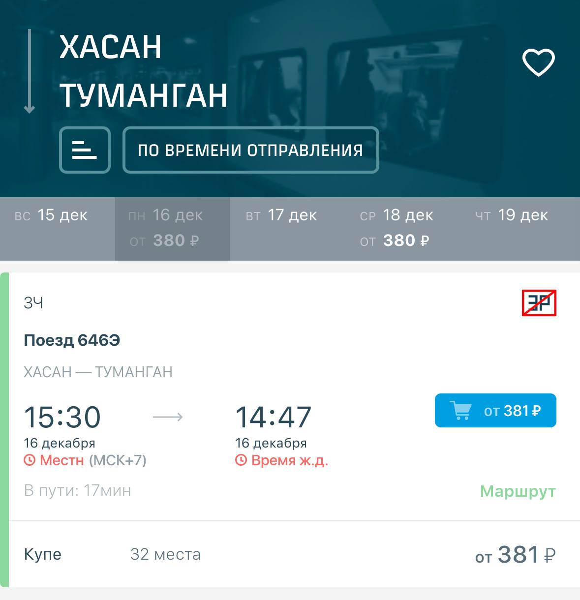 Билет стоит меньше ₽400, а ехать всего 17 минут. Отправление со станции Хасан в Приморском крае.