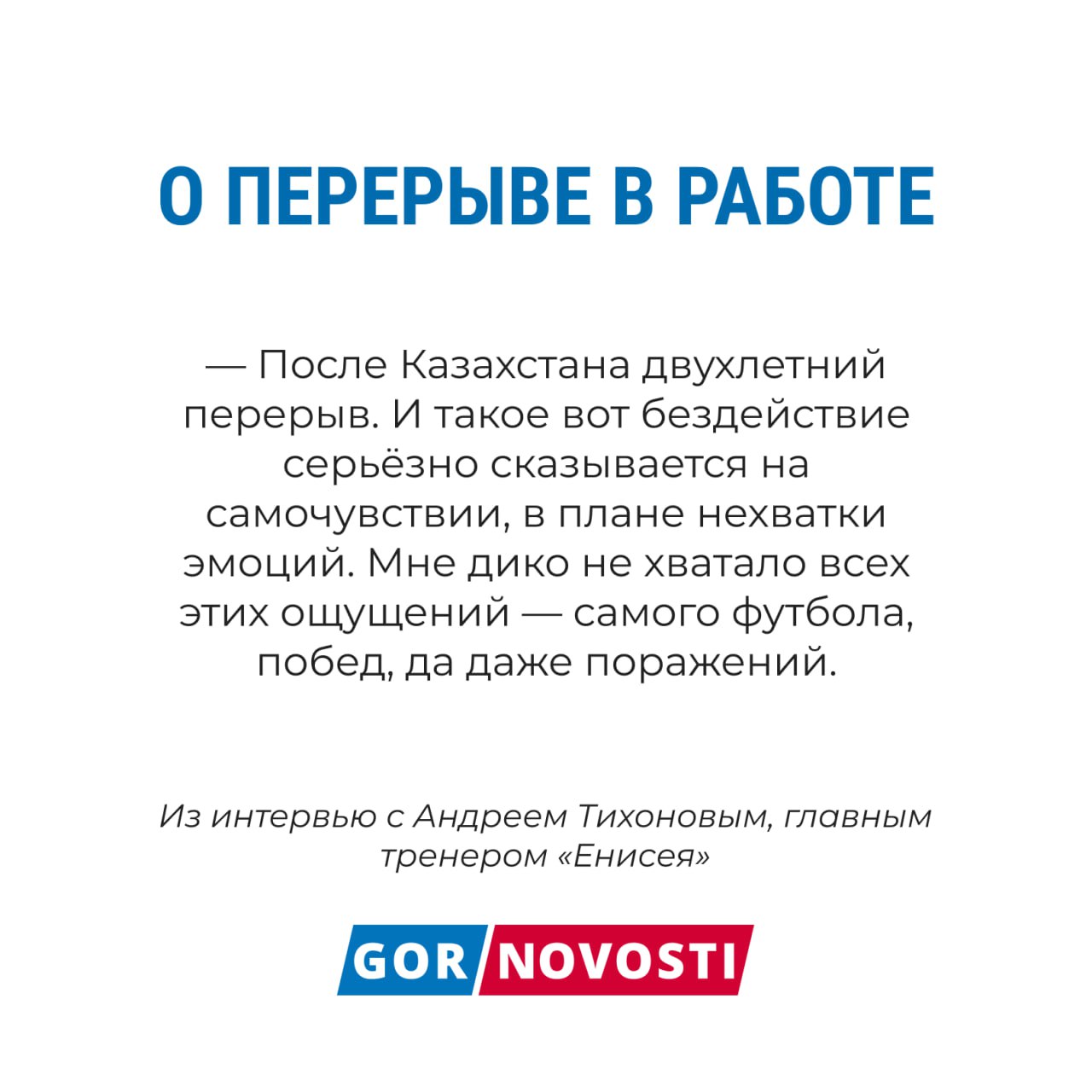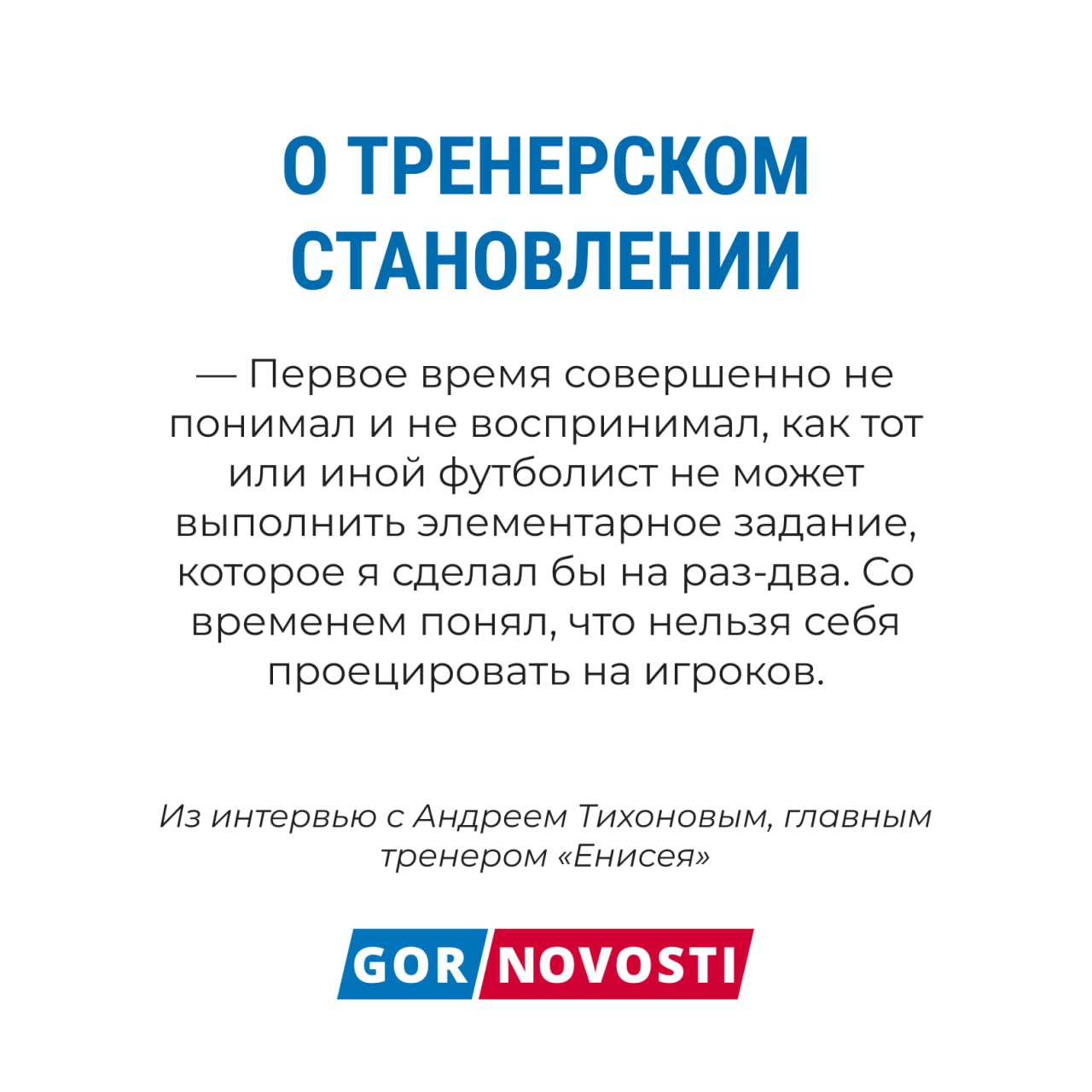 «Хочется вновь увидеть Красноярск в Премьер-лиге». Gornovosti первые из красноярских СМИ поговорили с легендой российского футбола Андреем Тихоновым, который спустя почти семь лет вновь стал главным тренером «Енисея».