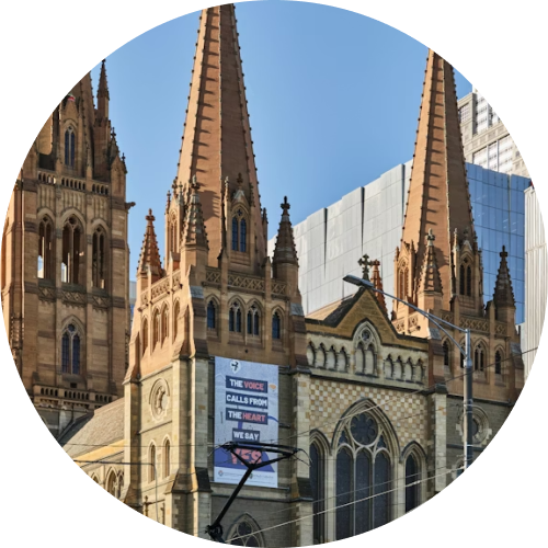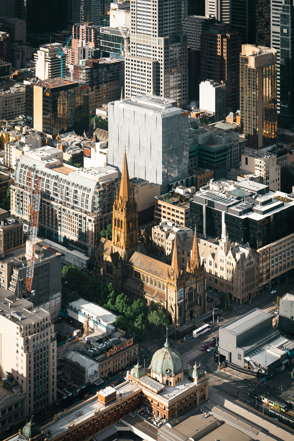 Напротив расположились красивые отель Windsor (Сайт / Google Maps – 111 Spring St, Melbourne) и The Princess Theatre (Google Maps – 163 Spring St, Melbourne). Чуть в стороне стоит мрачный и величественный неоготический Собор Святого Патрика (St Patrick's Cathedral / Google Map – 1 Cathedral Pl, East Melbourne) – самое высокое и самое большое церковное здание в Австралии. Вокруг собора разбит сад, а внутри ждут витражи и мистическая атмосфера.