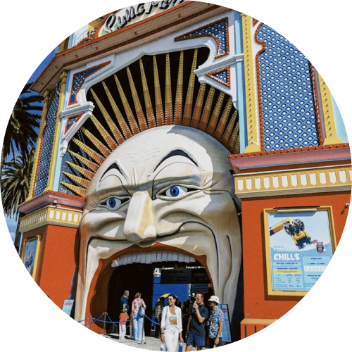 Сент-Килда (St Kilda / Google Maps) – легендарный прибрежный район Мельбурна с активной ночной жизнью. На пирсе St Kilda Pier (Google Maps) обитают мини-колонии диких пингвинов (их можно увидеть бесплатно на закате, за ограждением), а панорама небоскребов CBD в закатных лучах – один из самых «открыточных» видов города. Рядом с пляжем работает старейший в Австралии Luna Park Melbourne (Сайт / Google Maps – 18 Lower Esplanade, St Kilda) – парк аттракционов с гигантским улыбающимся (и чуть криповым) клоуном в качестве входа. Тут же находятся красивый Palais Theatre (Google Maps) и Hotel Esplanade (Google Maps) где когда-то начинали AC/DC и выступали молодые, тогда еще никому не известные Би-2.